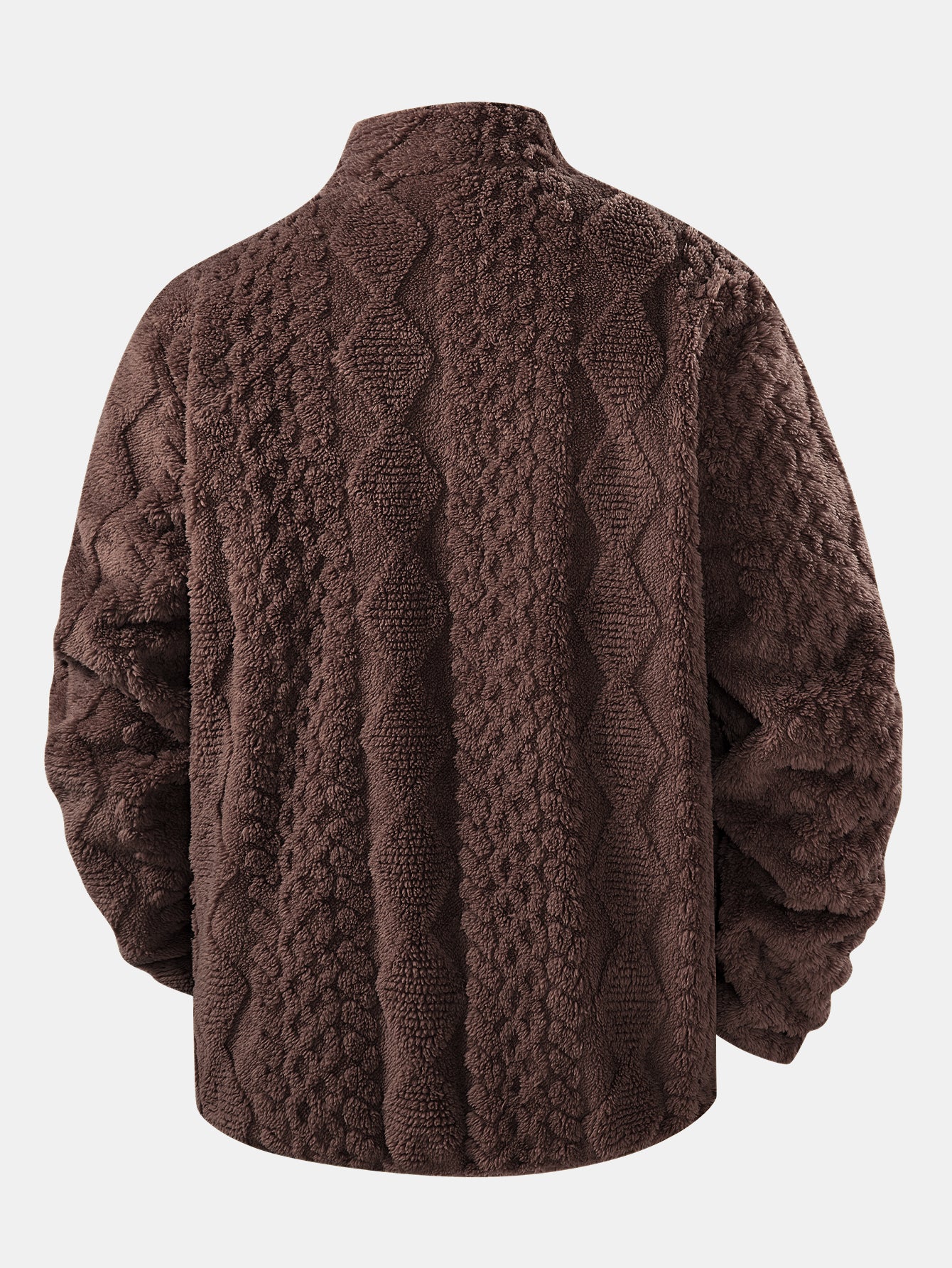 تميز بأناقة مع جاكيت التيدي المبطن بنقشة جاكار هندسية. يتميز بنقوش جاكار هندسية جذابة وبطانة من الفليس التيدي الناعم، يجمع هذا الجاكيت بين التصميم اللافت والراحة طوال اليوم.