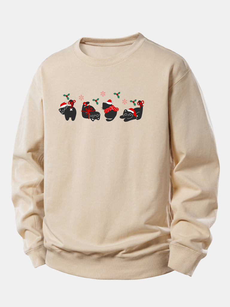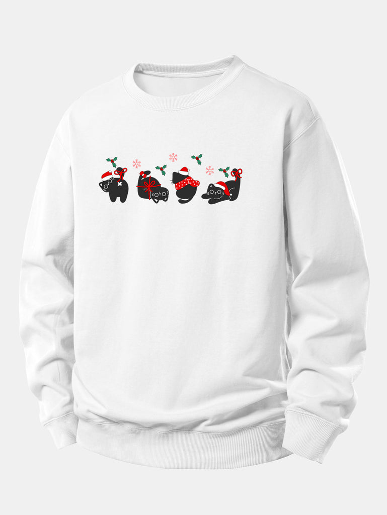 Christmas Black Cat Print Relax Fit Sweatshirt