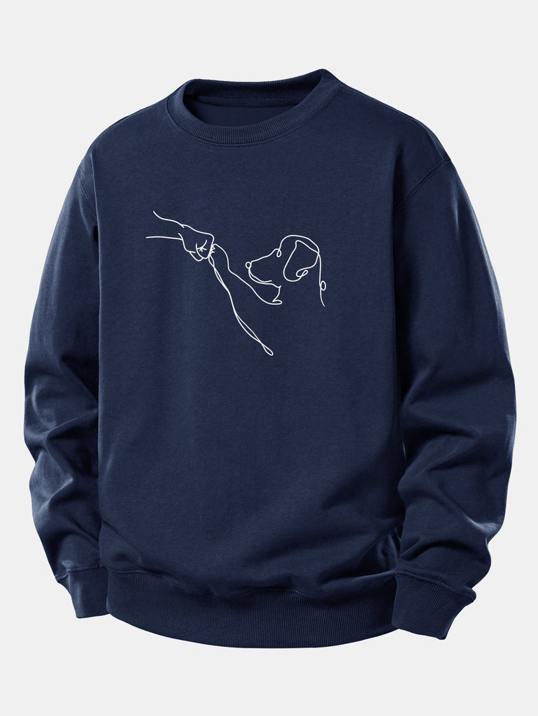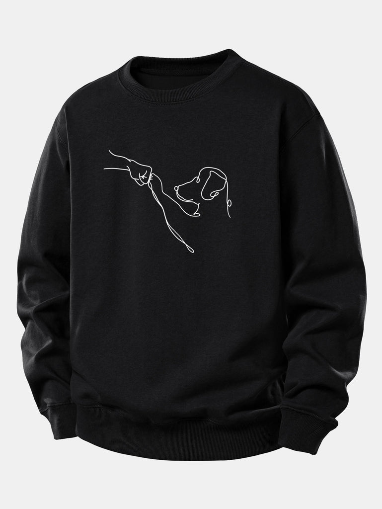 Dog Line Drawing Print Relax Fit Sweatshirt
