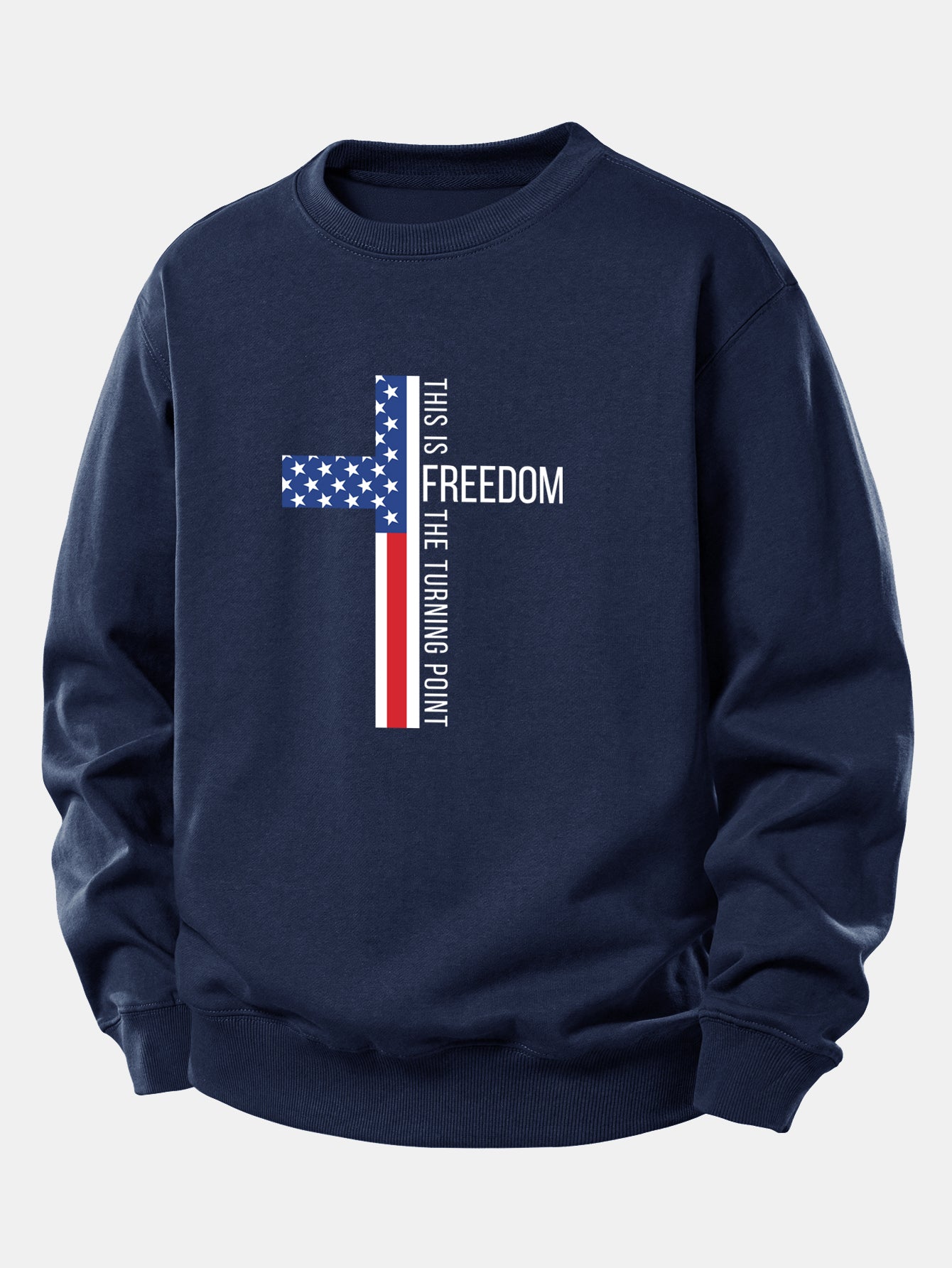 Freedom American Flag Cross Print Relax Fit Sweatshirt